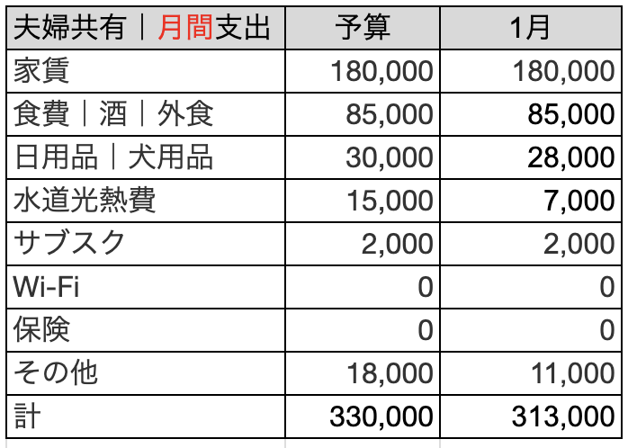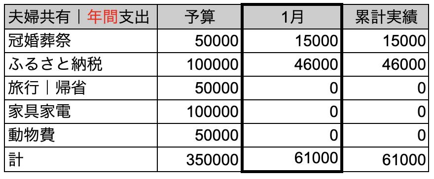 昨年は何かしらオーバーした項目があったので、予算枠を見直してリスタートしてよかったです。