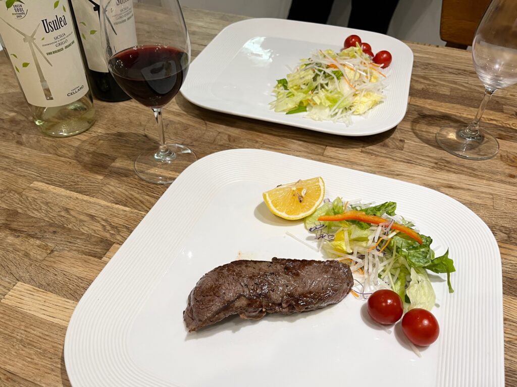 週末の夫婦ごはんは、私の希望によりお肉が多めでした。