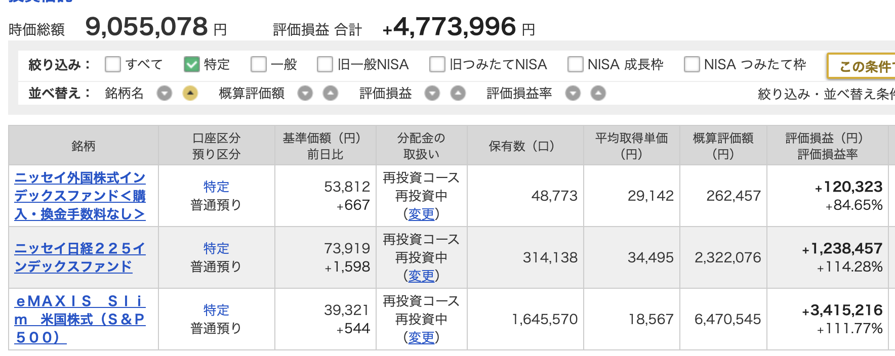 特定口座もほぼ変わらず、微増。